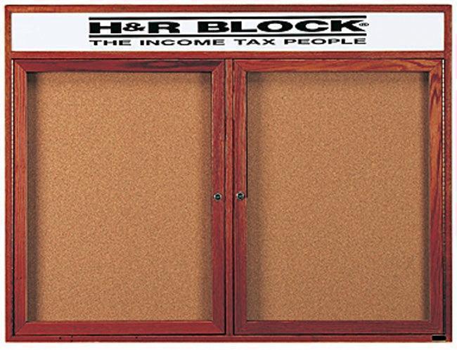 OBC3648RH Wood Enclosed Bulletin Boards with Header, Two Doors