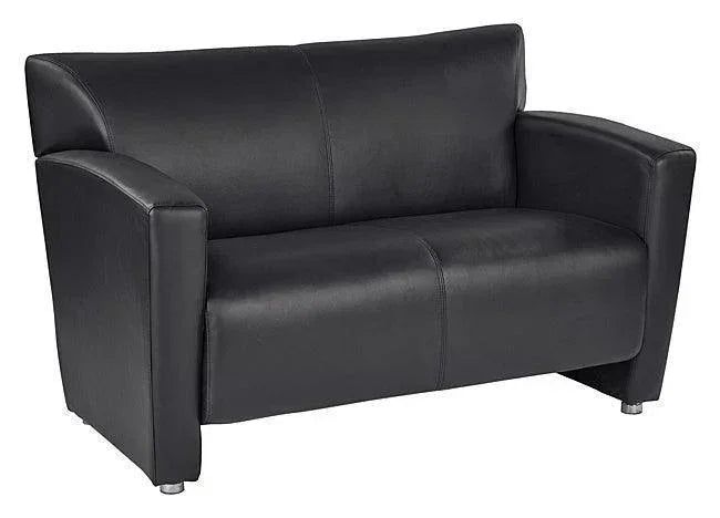 SL2912S - Black Faux Leather Love Seat with Silver Finish Legs by Office Star