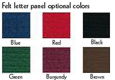 Fixed rear panel is a felt covered letter board designed to accommodate changeable letters with tabs spaced on 1/4" centers.