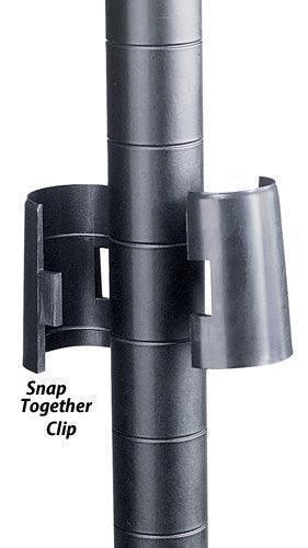 This unit attaches to existing wire shelving to form a continuous shelving unit for corner applications.