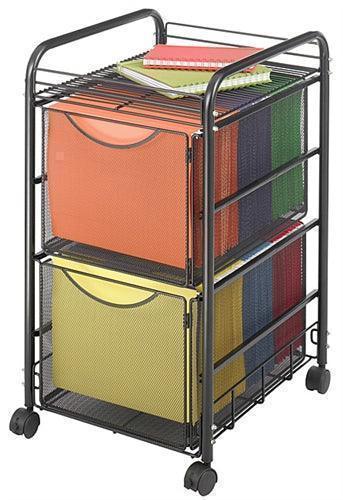 5212 Onyx Mesh File Cart with 2 File Drawers by Safco Contemporary style meets distinctive durability to create practical organization in this mesh cart. Easily store the cart under your desk or work surface.