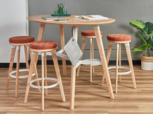 - Legs and bases are solid wood (Light Maple) with a natural finish