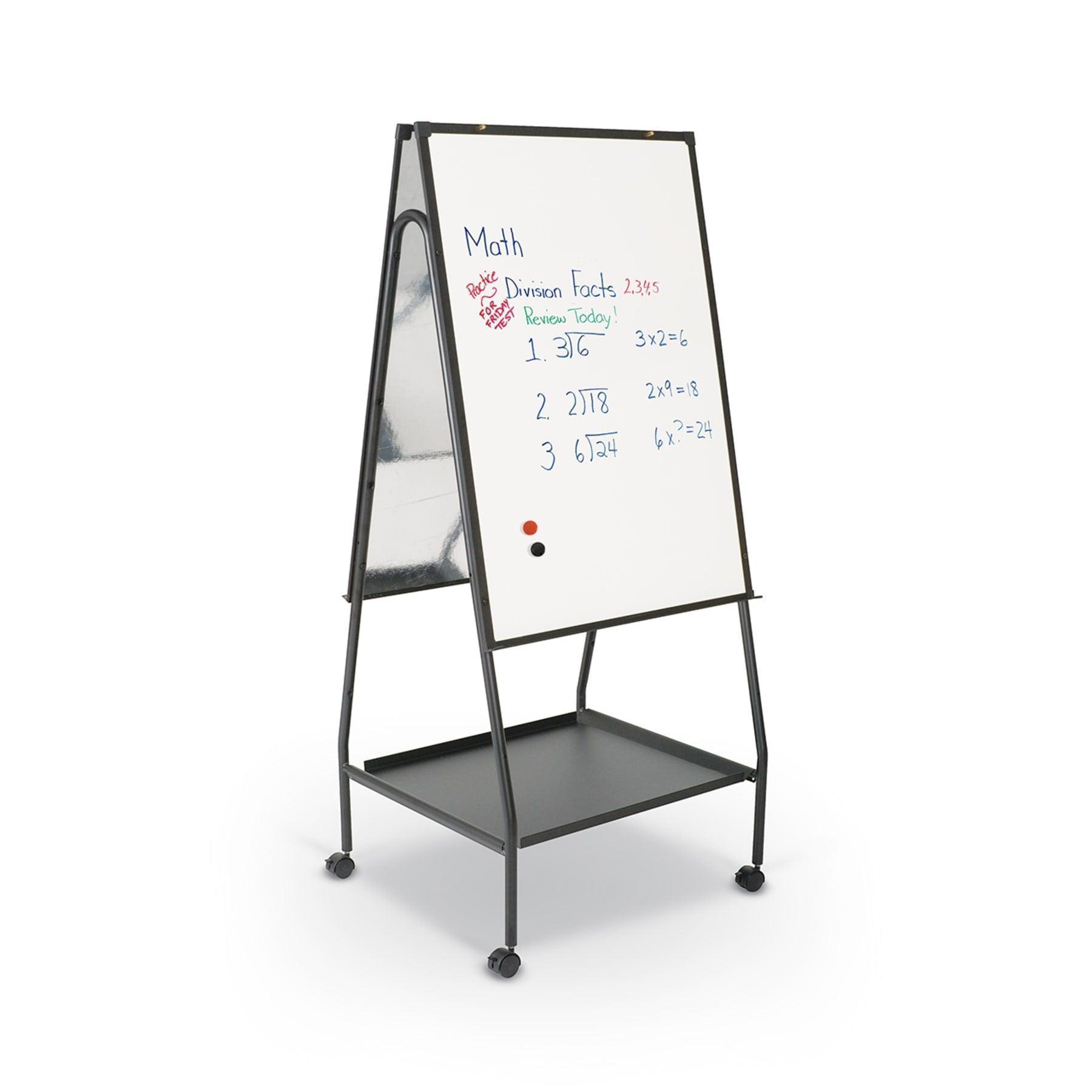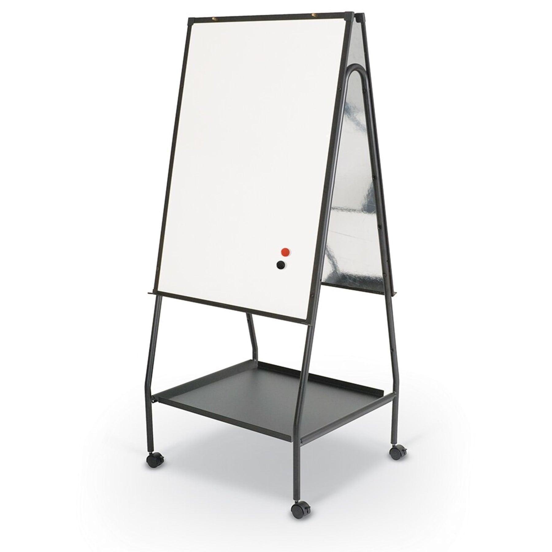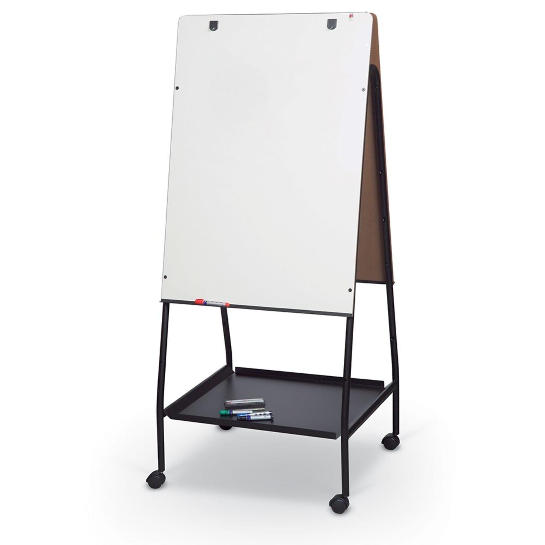 - Lower storage tray and locking 2″ casters included. Accessory tray and flip chart hooks (17-1/2″ apart) on each side.