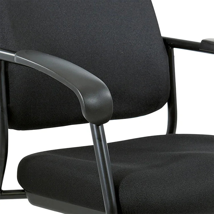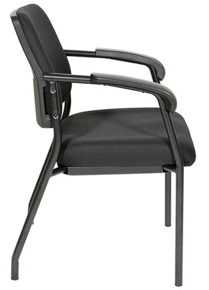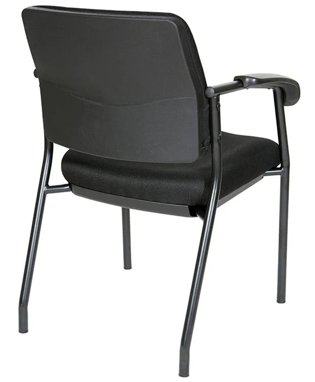 Comfortable, attractive seating for your office waiting room, reception area, or conference room with the Visitor's Chair Black Frame with Padded Arms. Generously padded seat and back with built-in lumbar support and PU padded contoured armrests will keep your guests at ease. Complement your existing decor with this chair's modern lines, black finished legs and fabric.
