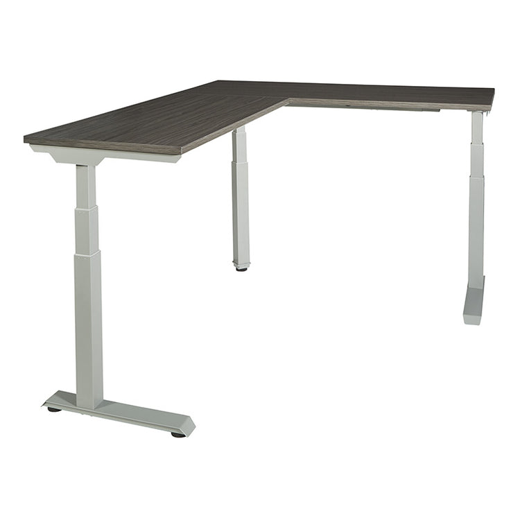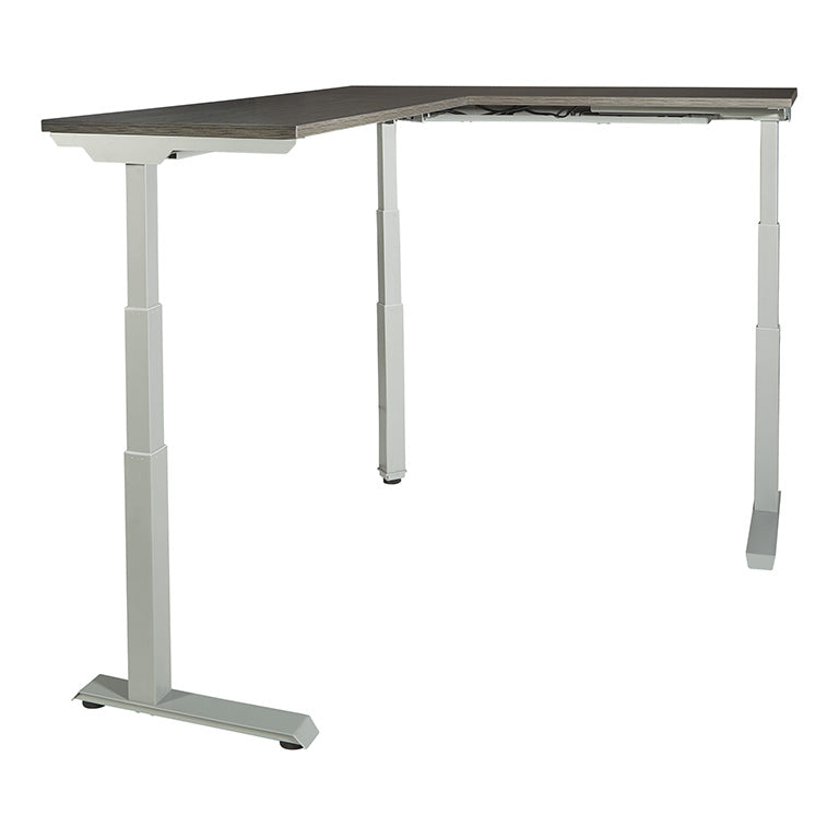 This OSP Ascend Electric Adjustable Height L Shape Desk enables users to alternate between sitting and standing to combat health risks of prolonged sitting, while ensuring ample work surface area for productivity. This is proven to improve posture, energy, focus, and reducing strain by engaging muscles, boosting alertness, and decreasing back pain.