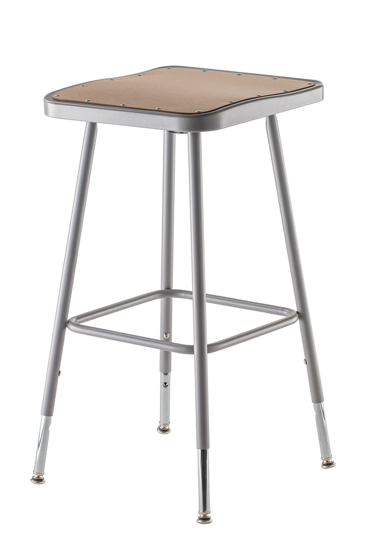 The durable construction and classic design of the 6300 Series heavy-duty square-seat stools are ideal for hands-on educational settings like art rooms, science labs, home economics or shop classrooms. These reliable stools feature a strong frame of 18-gauge steel tubing securely welded to the seat pan which is riveted in sixteen places to wide Masonite seats that will not warp, chip or crack as they provide years of dependable use. Footrests are securely bonded to each leg with four spotwell contact points.