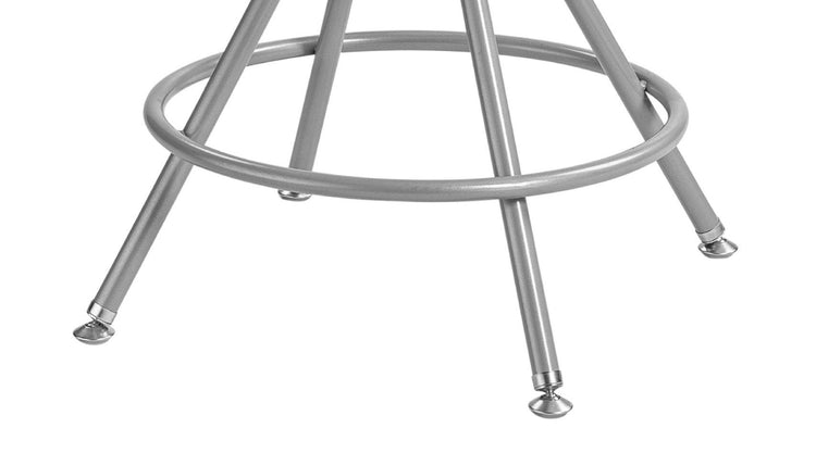 Institutions interested in ultimate strength, comfort and access for their hands-on educational environments need look no further than the 6500 Series heavy-duty padded swivel stools. They're the best option for settings like art rooms, science labs, home economics or shop classrooms. These reliable stools feature a sturdy frame of 18-gauge steel tubing securely welded to a 14 inches diameter seat pan. Riveted through the steel pan are 1.5 inch-thick gray vinyl cushioning that will provide years of dependable use. Swivel seat spins with ease 360 degrees enabling users to maximize their workspace. Footrest ring is securely bonded to each leg with four spotwell contact points for extra fortification. Height-adjustable from 24 inches to 30 inches. Rotating metal floor glides keep the stool level and prevent any floor damage.
