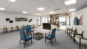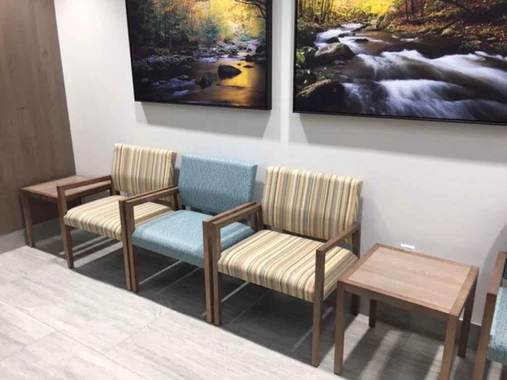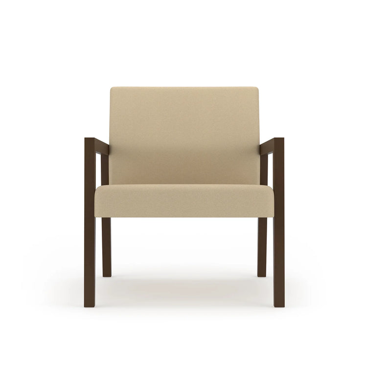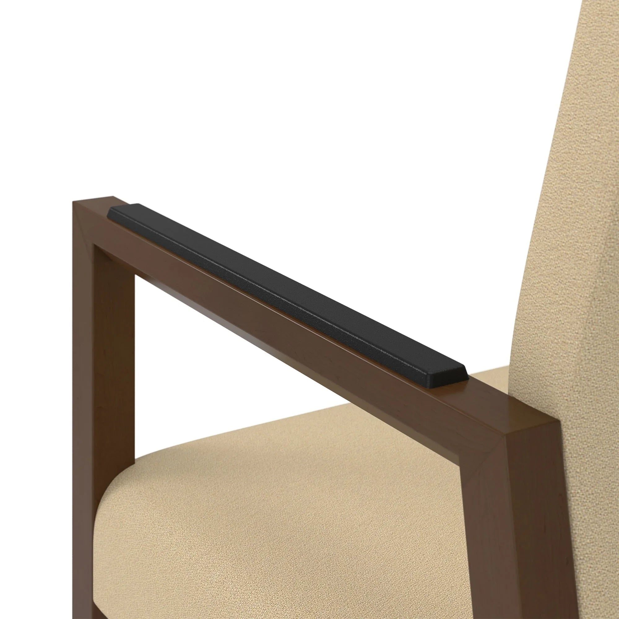 Contemporary geometric styling perfect for reception areas, lounges, and pull-up seating applications. Solid maple construction. Large selection of fabric and health care approved vinyl.