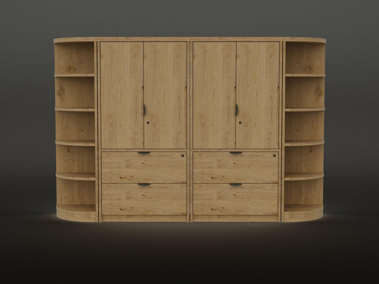 This wall unit is the perfect storage solution for your office or home office. Combines filing storage space with enclosed storage cabinets and corner bookcases for all your storage need.