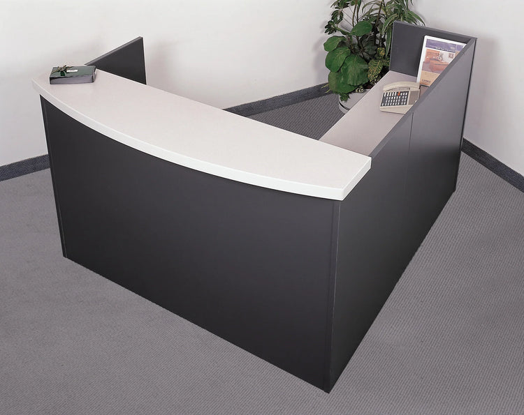 CA606B - Candex Deluxe Series L Shaped Reception Desk with 2" Thick Bow Front Counter