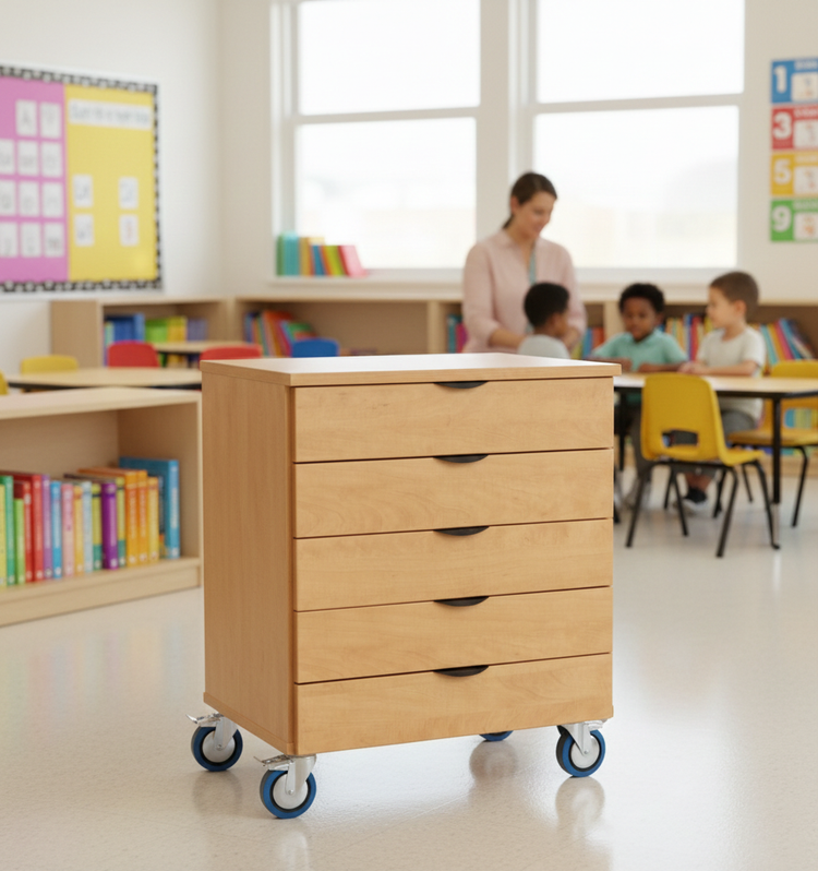Streamlined Storage: Features a vertical 5-drawer configuration, providing organized storage for everything from patient files and medical supplies to classroom materials and personal items.