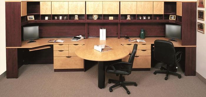 Right and Left Multi-File Extended Corner Pedestal Desk featuring 4 drawers,