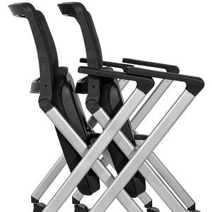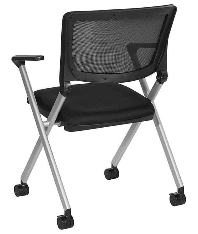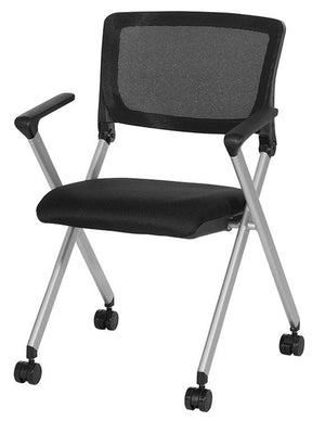 Welcome a cutomer or potential cliant into your business and offer them a seat on a comfortable WorkSmart Series deluxe folding chair. The sturdy Silver metal finish chair features a breathable Mesh back and your choice of custom fabric foam filled seats. Sold in 2-Packs and designed to fold up horizontal for nesting to save precious office space when not in use. They come complete with nylon armrests and dual wheel carpet casters for easy mobility and include a set of 2 clips for Ganging. With style and comfort you will find the WorkSmart chairs provide a solution for every atmosphere.