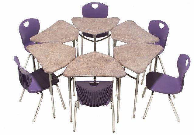 Our newest desk top design offers a unique diamond shape while maintaining a smaller classroom footprint... Making this series ideal for collaborative learning when space is a premium, The desk top design gives your students a generous space to learn. 4800 Series allows six students to collaborate in a circular configuration or choose a myriad of other collaborative options.