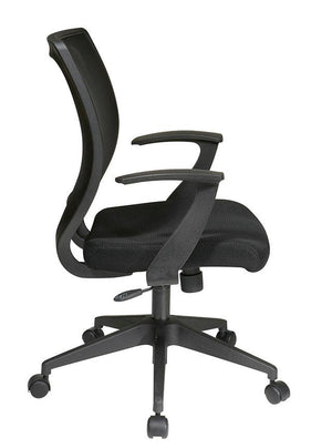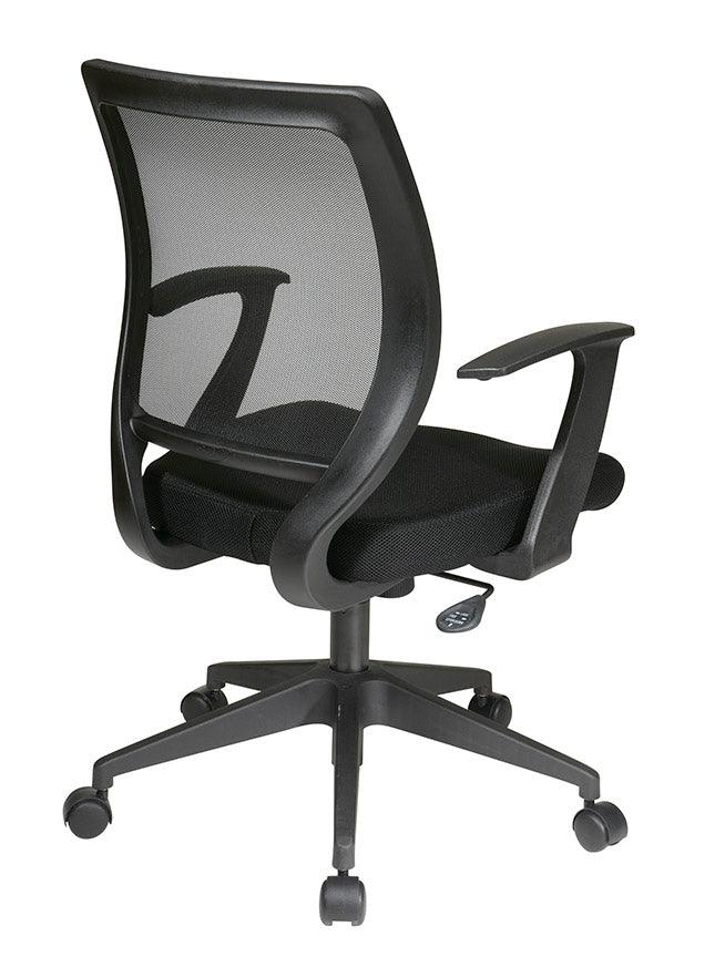 Work in comfort with the new work smart screen back task chair by Office Star. Outfitted with a one touch pressurized Pneumatic seat height adjustment and available in a variety of colors, this seating solution makes the perfect addition to any home. Intelligently engineered with a pressure responsive Screen back and padded mesh seat, this chair wicks away moisture while keeping your back comfortably cradled. Boasting a 360 degree swivel and padded T arms, this chair is perfect for home computer desk or checking emails at your office workstation. Couple all of these features with the heavy duty dual wheel carpet casters and you have a versatile task chair that is as affordable as it is comfortable.