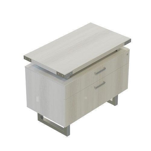 Credenza Features: Complete with double pedestals featuring one with three storage-sized drawers and one with a storage drawer and a file drawer accentuated with discrete brackets giving the appearance of a floating workstation. Pedestal has option of integrated power module with two standard and two USB outlets in the top drawer (MRPM power module sold separately). Pedestals comes keyed alike; for additional keying options contact customer service