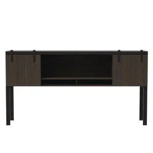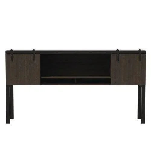 - Overhead Hutch Features: Features one decorative shelf, dividing the center space between the two cabinet doors on the sides. Supports provide added durability and stability when attached to desking units