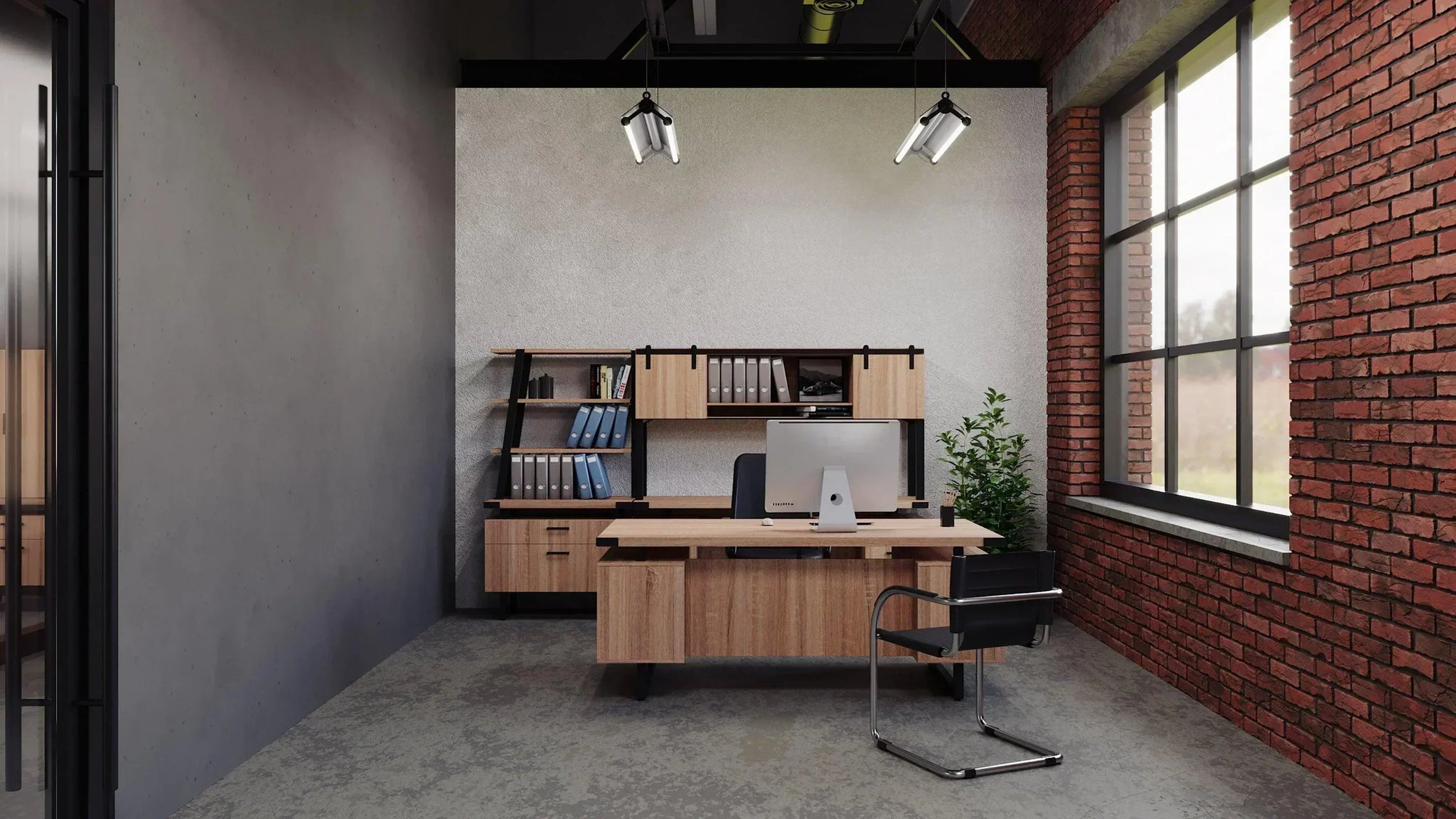 Sand Dune and Southern Tobacco laminates come with Black hardware, and White Ash and Stone Gray premium laminates come with Silver. Featuring a floating 1 5/8” thick work surface on top of Silver or Black standoffs. Also includes a laminate modesty panel for additional privacy. Drawer pedestals have option of integrated power module with two standard and two USB outlets in the top drawer (MRPM power module sold separately). Double pedestals keyed alike; for additional keying options, please contact Customer Care. Coordinates with Mirella™ Conference and Reception designs for a cohesive and professional look. Set includes double pedestal BBB/BF executive desk, double pedestal BBB/BF credenza, overhead hutch with wood sliding doors, lateral file cabinet with 3 shelf bookcase on top.