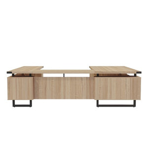 - Desk also includes a center drawer for convenient storage and a laminate modesty panel for additional privacy