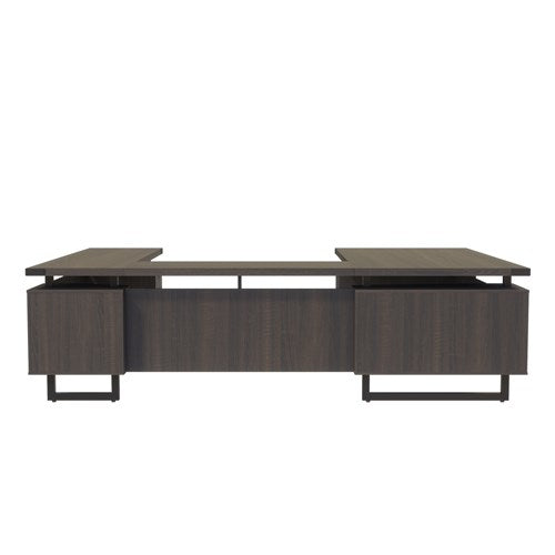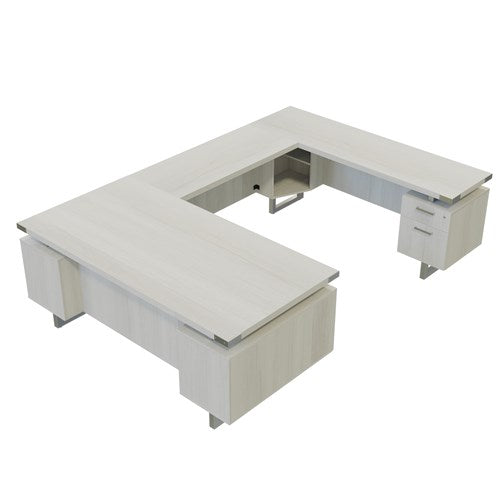 - Set includes Desk, universal Bridge, Credenza and two Pedestals