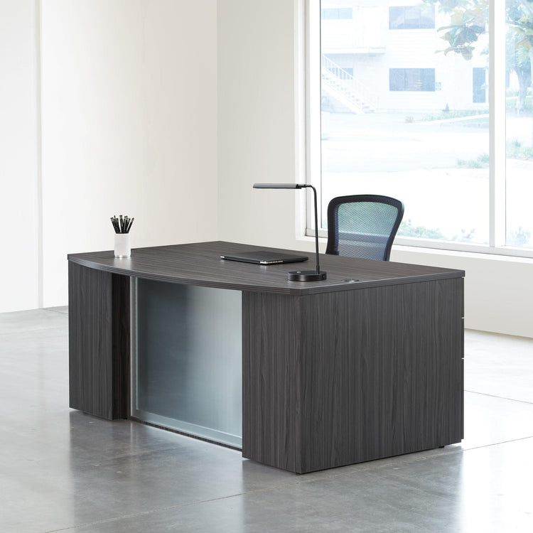NAPTYP201G - Napa Series Bow Top Glass Modesty Step-Front Desk by OSP