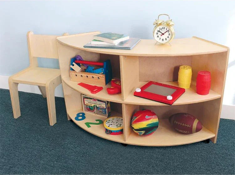Enabling to get the maximum usable storage areas Half rounds, full rounds and various kinds of round-a-bouts. Each 24" high unit features sturdy birch laminate construction. All edges are hand sanded smooth for safety. The units roll easily on heavy duty casters (not shown).