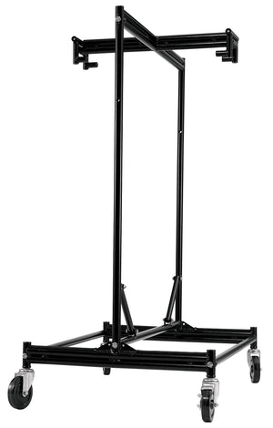 The NPS Stage Dolly lets you store and move up to six 3' or 4' wide stages and seated riser platforms without worry. The substantial frame is made from 14-gauge tubular steel with a black powder-coated finish. Users can easily maneuver even full loads with the four hard rubber 6" swiveling casters, each with a weight capacity of 325 lbs for a total weight capacity of 1300 lbs. A built-in latch secures the stages to the dolly to prevent tipping during transport.