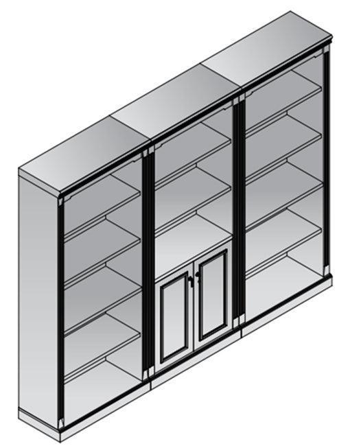 TOW-TYPWALL - OSP Townsend Traditional Executive Triple Wall Unit Bookcase w/ Center Bottom Doors