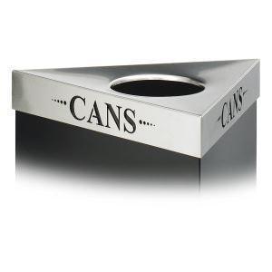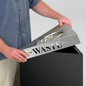 - Stainless steel lids feature laser cut inscriptions to assist in the identification of recyclables.