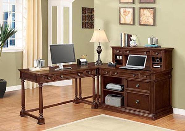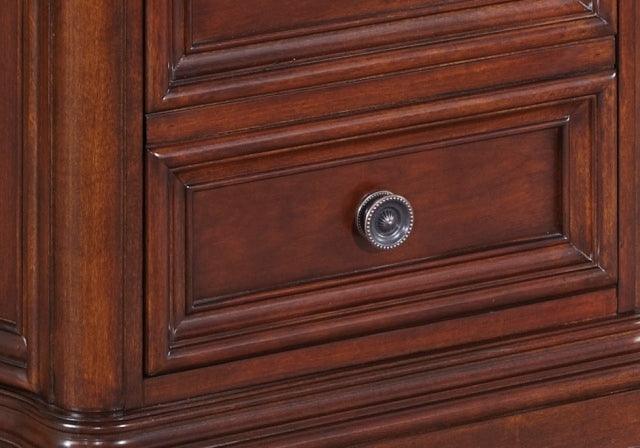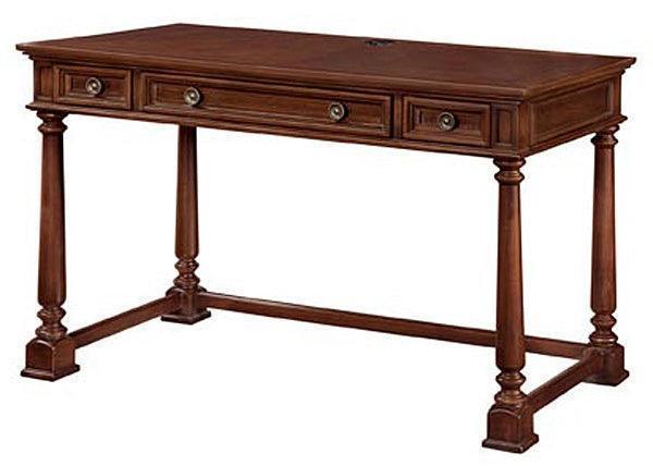 7859-88 Walden Writing Desk by DMI Walden collection combines, fresh, casual feel of 21st century, with old world elegance. Featuring framed drawers and panels along with smart crown and base moldings. Reverse diamond matched veneer panels and intricate veneer details makes for an elegant product. Construction of cherry veneers, hardwood solids and wood product. Handsome Cocoa Cherry finish. Antique brass finished knobs accented with rosette back plates complete the look. New Collection