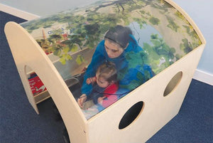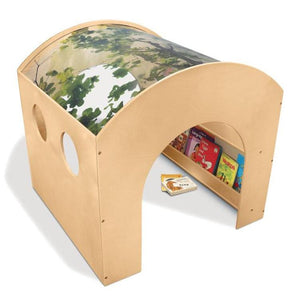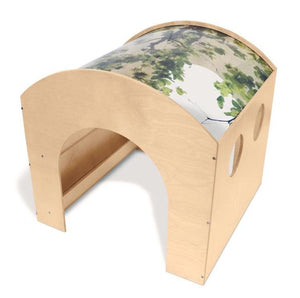 Innovative Whitney Brothers® oasis for children! Unique curved roof of this play house is a safe, sturdy, shatterproof acrylic panel imprinted with the realistic image of a spreading tree canopy that beckons children inside for a peaceful break yet provides easy visibility for adult supervision. Bring nature indoors and create a delightful quiet space that children will love! Coordinates seamlessly with all other pieces [sold separately] in our award-winning biophilia inspired Nature View Collection.