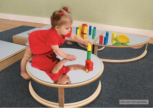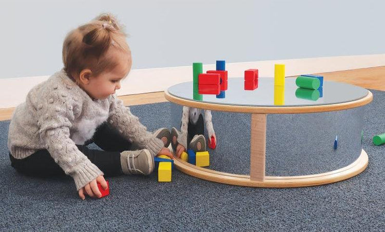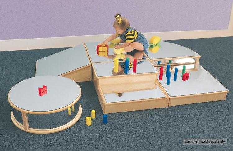 Floor mirror shapes for first-movers! Mirrors are important tools that foster a young child's self-awareness, self-esteem, intellectual curiosity and cognitive development. In an inventive twist, we applied safe, shatterproof acrylic mirrors on a variety of block shapes to encourage a first-mover's mobility, coordination and confidence through exploration and play.