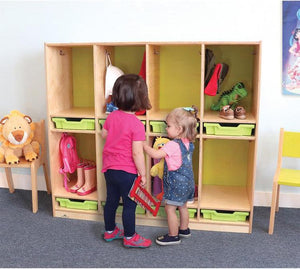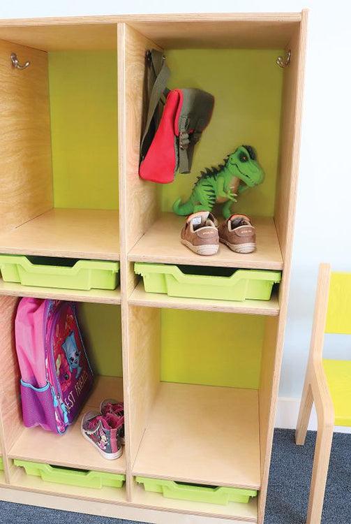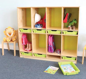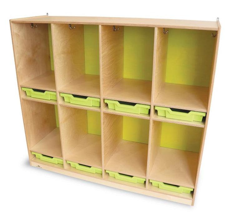 Looking for compact coat locker storage? Here's an inventive and attractive solution! The compact footprint and generous depth of this children's locker accommodates eight students in eight separate storage sections without any compromise in features. Furnish your classroom with all the coordinated furniture elements in our Whitney Plus collection! Includes birch plywood back panel with no visible screws or joinery for a fine finished furniture look