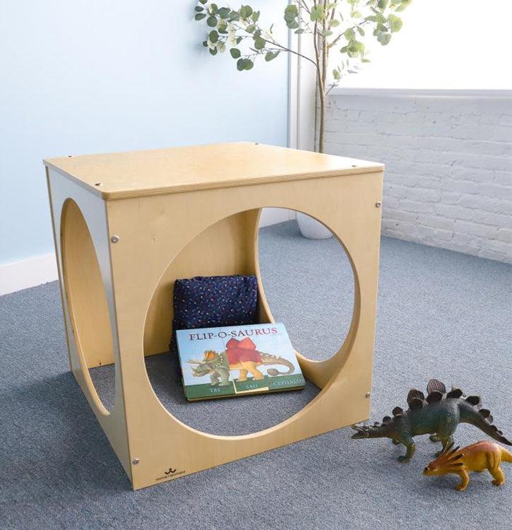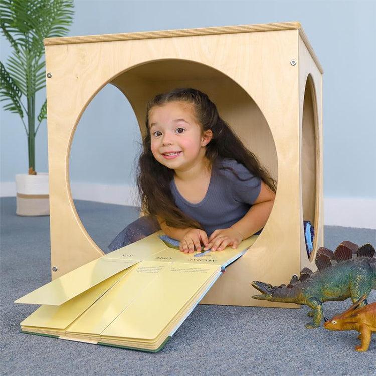The toddler version of our annual best seller! From a place to learn their ABC's or a comfortable corner for privacy, this six-sided cube has the option of having a roof over head or if you prefer, turn it over and leave it open at the top! This new version is sized perfectly for a toddler to play, read or curl up and nap. Also available with Floor Mat item #WB0217