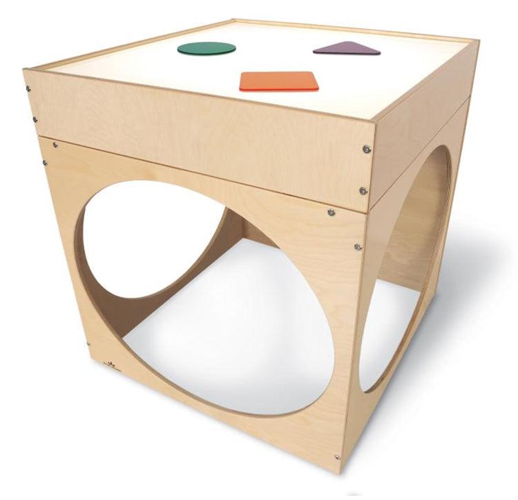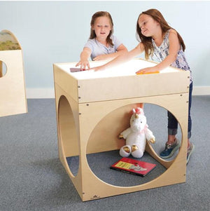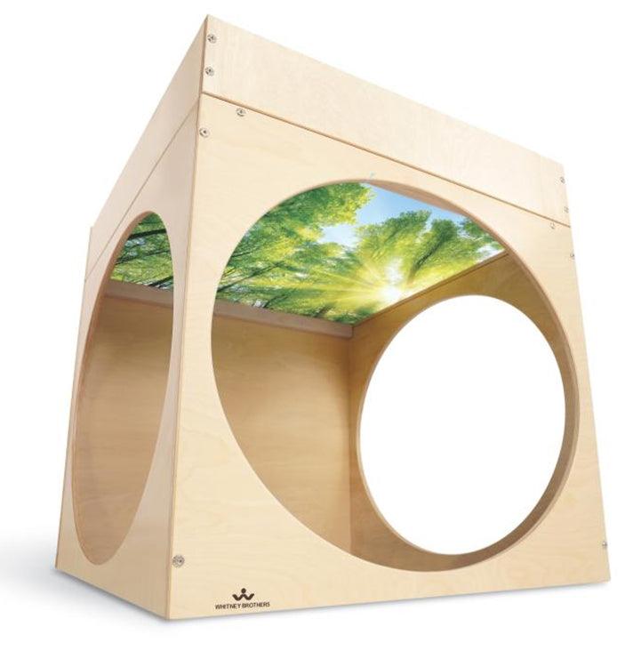 From a place to learn their ABC's our a comfortable corner for privacy, this six-sided cube is reading cube with a light table and a clever twist! Every child will love the cozy, quiet interior with a view that looks up through a brilliant sunlit forest canopy printed on the underside of the light table mounted on top. Large enough for a pre-schooler or two! Or a great place if a child wants to cozy down with a pillow and blanket (not included) and let their imaginations fly. Also available with Floor Mat item #WB0788