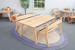Iresistable, realistic Live Edge slab activity table for children! You'll love the character and rich visual interest of the natural wood grain variations in our Nature View Live Edge rectangle tables in 18", 20" and 22" heights. Observ closely the bark to find other nature surprises! Mix and match with other seating and table items in our award-winning Live Edge design motif to create a themed activity area, reading space, or entire room environment! Also coordinates perfectly with all other furniture pieces in our award-winning biophilia-inspired Nature View Collection