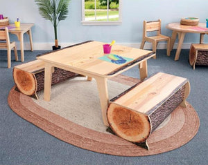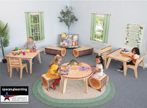 Iresistable, realistic Live Edge slab activity table for children! You'll love the character and rich visual interest of the natural wood grain variations in our Nature View Live Edge square tables in 18", 20" and 22" heights. Observe closely the bark to find other nature surprises! Mix and match with other seating and table items in our award-winning Live Edge design motif to create a themed activity area, reading space, or entire room environment! Also coordinates perfectly with all other furniture pieces in our award-winning biophilia-inspired Nature View Collection