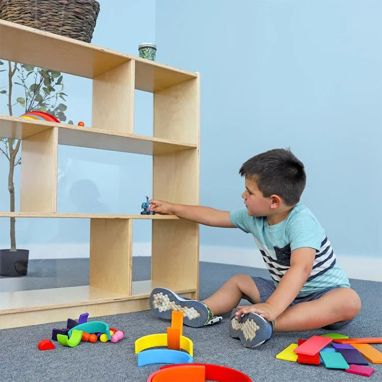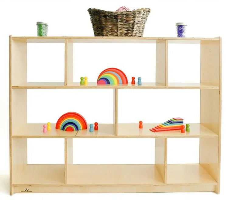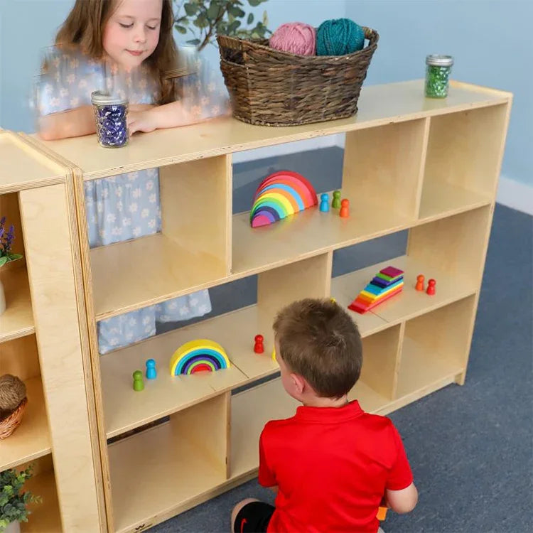 Clear backed storage cabinet that connects to create a defined area! We believe in the warmth of wood to achieve harmonious design so our connection system for this cabinet avoids the use of unsightly plastic connectors. The cabinet features a safe, shatter-resistant clear acrylic back that improves child supervision and brightens any room environment. Discreet pre-drilled holes accommodate fasteners [provided] in the cabinet end panels that enable easy and direct connection with other WB1797 cabinets or WB1798 36" Corner Storage Cabinets [each sold separately] to create a crisp, seamless and flexible area layout. Two fixed shelves provide three divided storage compartments on the upper shelf and two spacious compartments on the lower shelf. All corners and edges are rounded over and finished smooth for safety. Floor glides included.