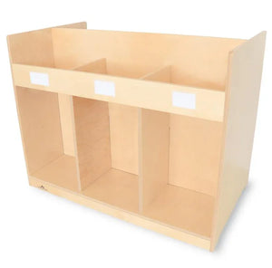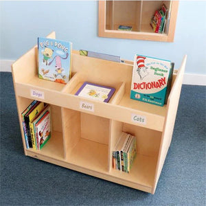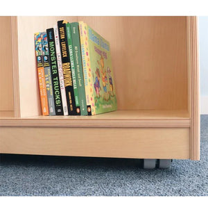 A better mobile library solution! Each side of this sturdy and functional two-sided mobile cabinet features three open divided sections over three large storage compartments that provide an integrated storage and display solution for books, magazines, materials or other library supplies. Additionally, four pre-drilled holes located discreetly in the cabinet interior enable it to attach with screws [provided] to other WB1821 units [each sold separately] to create a complete mobile library storage solution! Mounted on four heavy duty non-marking 2" casters. Includes six self-adhesive vinyl nameplates and six index cards for labeling.