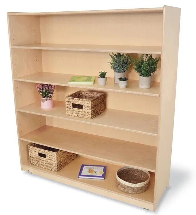 Economical and attractive mobile shelf storage cabinet! Our Shelf Cabinet family features standard dimensions of 15"D and 48"W. Shelf Cabinet features two fixed and three adjustable shelves that provide flexible configuration to accommodate a varied assortment of taller books, larger toys, stuffed animals or other large items. Mounted on four heavy duty non-marking casters; includes wall attachment brackets for safety. Need a different height? Check out the options in our Shelf Cabinet family: WB1849 48"H, WB1850 42"H, WB1853 36"H, WB1851 30"H and WB1852 24"H