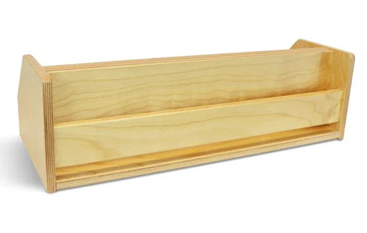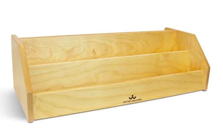 Place the books at infant and toddler level! Infant - Toddler Book Display features premium quality design and construction that won't slide on the floor and a wide, no-tip footprint that puts book display and access at just the right height to engage crawlers and young toddlers. The front includes two graduated height fixed shelves [each is 2.25"D x 22.75"W x 4.125"H] that are canted slightly backward for optimum book stability and front cover display. The back includes a single vertical pocket [1"D x 22.75"W] that accommodates taller books. All edges and corners are rounded over and sanded smooth for safety.