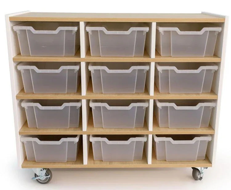 - Twelve spacious cubby storage compartments holds twelve clear Gratnell trays