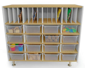 - 16 cubby compartments Includes 16 clear plastic trays.